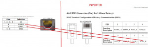 - BPE-LFP-2.56/5.12kWh battery Battery is not communicating: there is an issue with the Battery Management System (BMS) cable that comes with the All-In-One, it works with the 5.22kWh Stackable but doesn’t work with the 2.56/5.12kWh wall mounted battery. To work with any wall mounted battery, the Inverter side of the BMS cable needs to be cut and a new RJ45 connector needs to be installed according to this configuration: